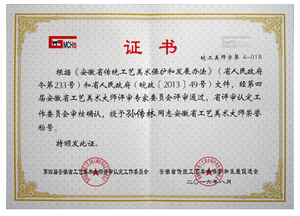 孙传林,男,号晓山艺人,1968年12月生,安徽马鞍山人。安徽省高级工艺美术师,中国工艺美术学会会员,中华传统工艺大师。孙传林自幼喜爱书画,多年来勤学苦练,拜师访友,先后学习和掌握了竹木雕刻、丝棉画、漆画三种工艺美术制作技艺,且善于融会贯通,已形成了自己独特的艺术风格。创作的丝棉画、漆画作品多次获得包括全国工艺美术最高奖“百花奖”在内的国家级专业金奖。作品已被国内多位知名收藏家签约收藏。