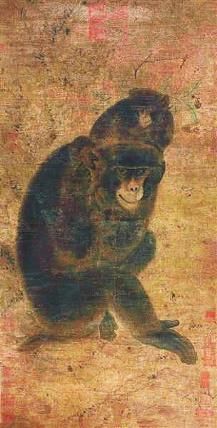 2011年6月,在北京的一场拍卖会上,一幅无款的《子母猴图》引起了业界的关注。该图为水墨纸本,纵92厘米,横46厘米。图绘一母猴呈侧蹲式扭首坐立,闭嘴抿鼻双眸炯视,神态安详而严肃,似在眺望远方。子猴蹿于母猴背上扭头张望,右爪欲抚摸母猴脸部;母猴右爪则紧拽小猴尾巴绕压住子猴小爪,母猴左手回曲向后似在托举小猴臀部。此作构图奇特,刻画准确生动,特别是把小猴子的调皮劲儿刻画得入木三分,显示出画家的精湛技艺和匠心独运。此图虽无图名,又无款识,但应系画坛高手所作。